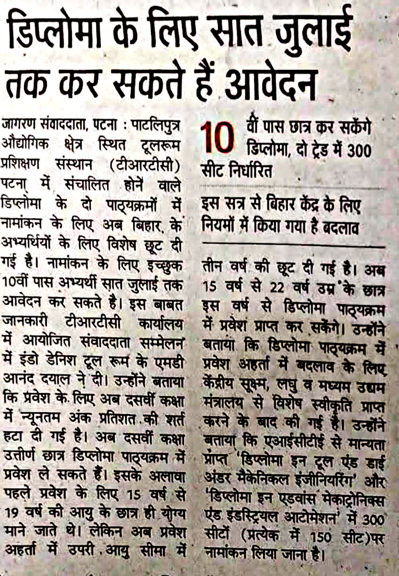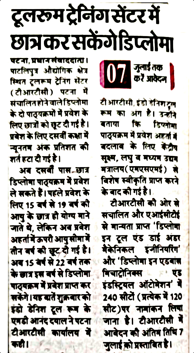 Advertisement for Admission to Diploma Course at TRTC Patna